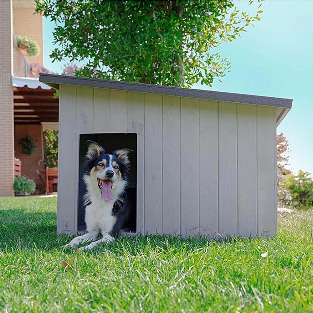 Die Hundehütte Argo ist dank der Kunststoff-Füße perfekt vom Boden isoliert. Die Tür ist zum besseren Schutz vor Witterungseinflüssen seitlich angebracht und das vollständig zu öffnende Dach erleichtert die Wartungsarbeiten, sodass Sie jeden Winkel im Inneren mühelos erreichen können.