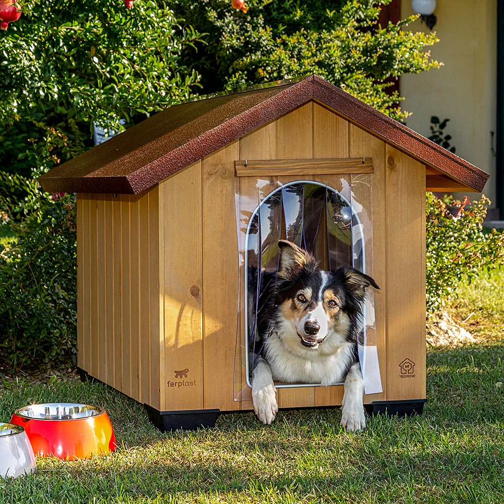 Hier ist das ideale Zuhause für Ihren Hund! Domus ist eine perfekte Hundehütte weil sie bequem, strapazierfähig, gut vom Boden isoliert und mit einer speziellen Versiegelung versehen ist, um ihre Langlebigkeit zu erhöhen.