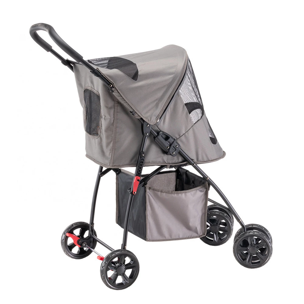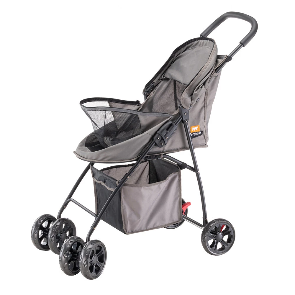 Globetrotter ist ein Kinderwagen für kleine Hunde, bis zu einem Gewicht von 9 kg, der für Welpen oder ältere Tiere mit motorischen Schwierigkeiten entwickelt wurde. Zuverlässig und robust, ist er aus widerstandsfähigen Materialien, wie Kunststoff, Metall und Stoff, von hoher Qualität, so dass Sie ein sehr solides, aber auch leichtes Produkt haben. Äußerst komfortabel für das Tier, ist der Globetrotter mit einem Verdeck ausgestattet, welches nach Belieben angehoben und abgesenkt werden kann, mit einem Anti-Regen-Verdeck; außerdem sind die Seiten, die Vorderseite und die Rückseite aus Mesh gefertigt, um eine ausreichende Belüftung zu gewährleisten. Sicher für Ihr Haustier: Das Innenfach des Kinderwagens ist mit einem Karabinerhaken zur Befestigung am Halsband oder Geschirr Ihres treuen Freundes ausgestattet. Der Globetrotter verbindet Komfort mit großer Praktikabilität. Er ist so konstruiert, dass er sich leicht zusammenfalten und schließen lässt, so dass er einfach im Kofferraum Ihres Autos transportiert und mit minimalem Platzbedarf gelagert werden kann. Dank des Netzkorbs mit einem Fassungsvermögen von bis zu 3 Kilo, der sich im unteren Teil befindet, können Sie alles Zubehör mitnehmen, das Sie für Ihren Spaziergang benötigen. Für maximale Sicherheit sind die Hinterräder mit Feststellbremsen ausgestattet, während die Vorderräder mit Stoßdämpfern versehen sind, die den Transport noch komfortabler machen. Bei schlechten Lichtverhältnissen schließlich sorgen die reflektierenden Gewebestreifen für Sichtbarkeit. Wenn Ihr Hund zu klein oder zu alt ist, um mit Ihnen Schritt zu halten, Sie aber trotzdem spazieren gehen möchten, ist dieser Kinderwagen die perfekte Lösung, um ihn problemlos mitzunehmen!