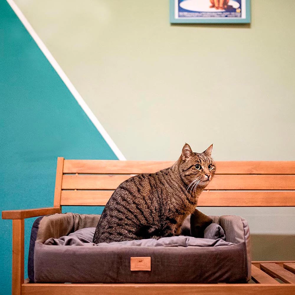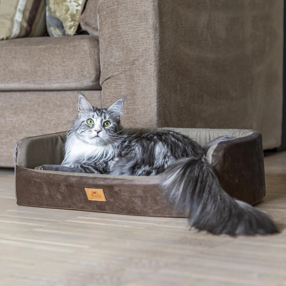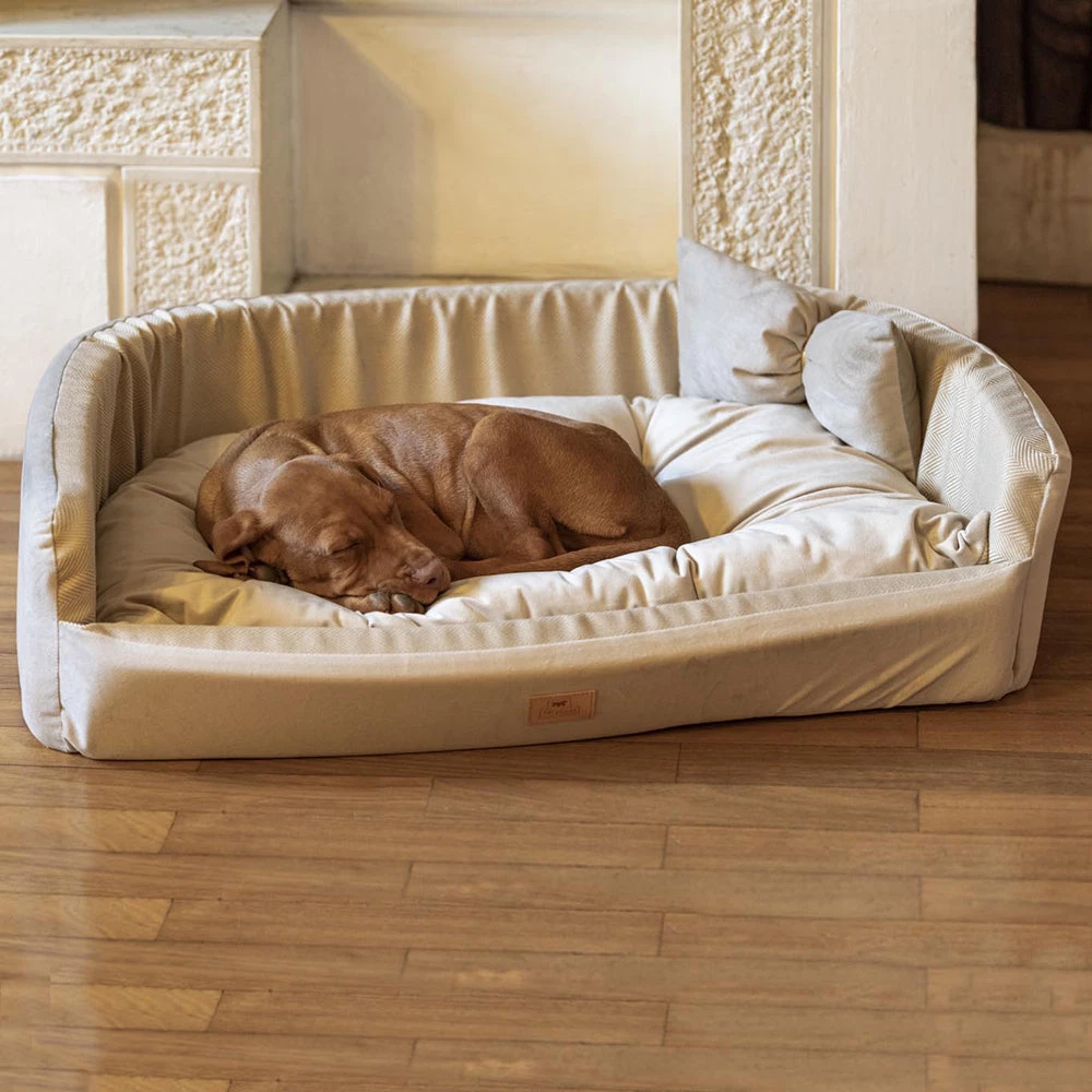 Das Harris-Stoffbett für Hunde und Katzen ist dank seiner leicht abgerundeten Form mit gepolsterten Seitengittern und dem mitgelieferten bequemen Kissen perfekt geeignet, um Ihren tierischen Freunden angenehme Momente der Entspannung zu ermöglichen. Das Kissen, das zur Reinigung herausgenommen werden kann, ist doppelseitig, eine Seite in Stoff, die andere in elegantem Samt.