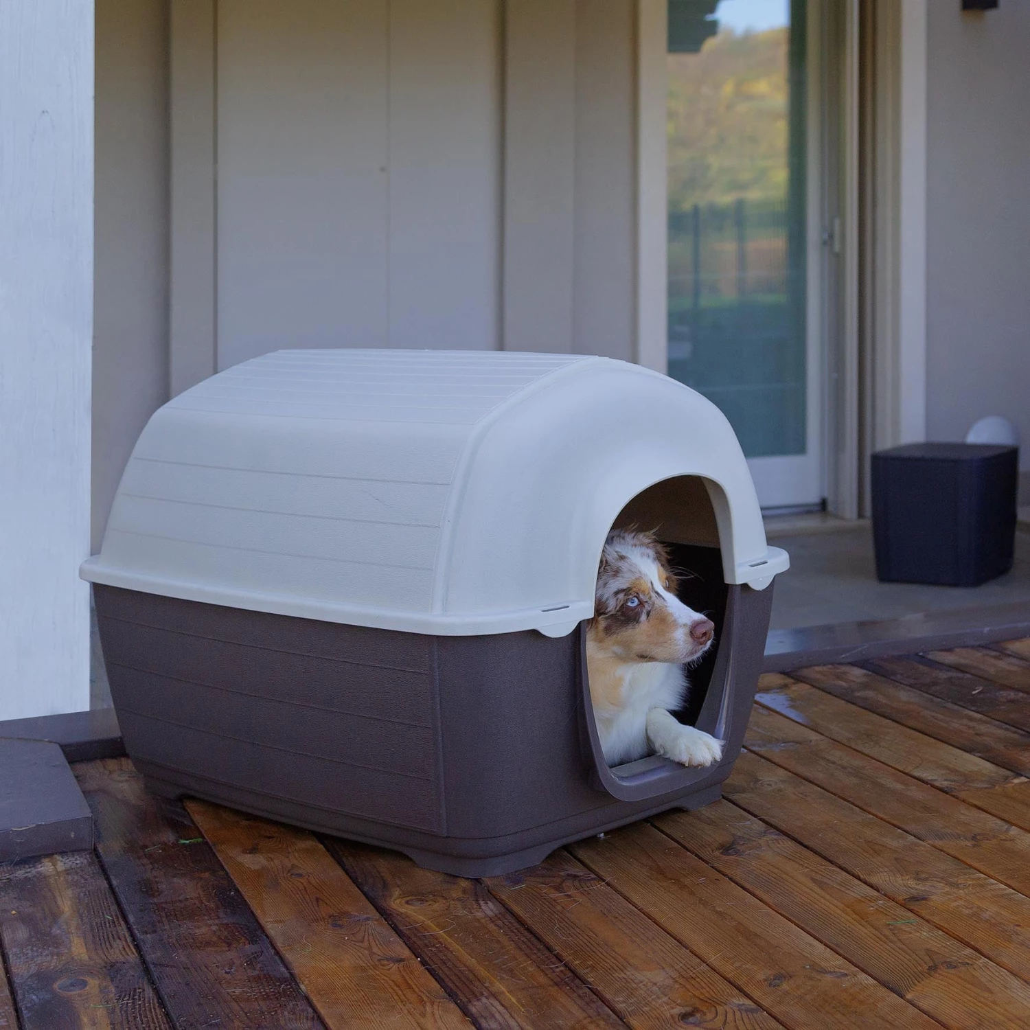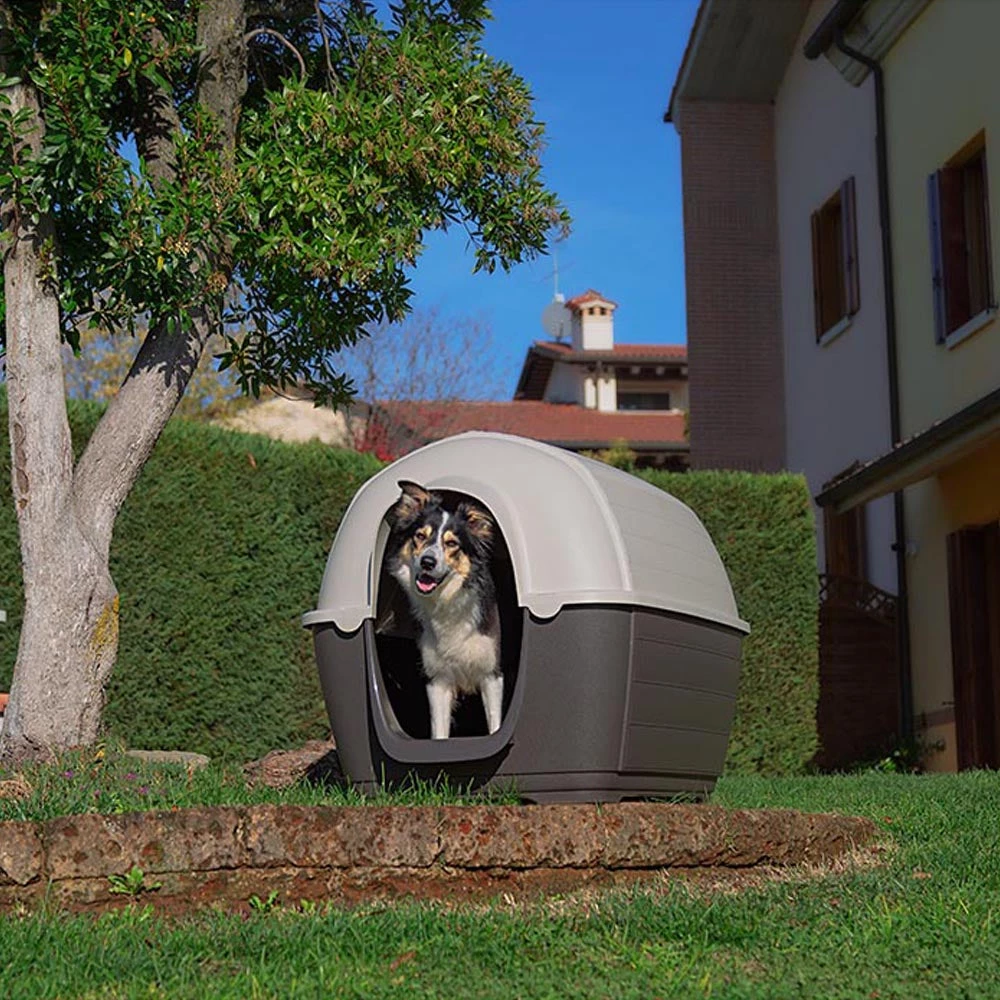 Kenny ist eine Kunststoff-Hundehütte für den Aussenbereich. Sie erinnert optisch ein wenig an ein Iglu und bietet ausgezeichnete Isolierung bei hohen und niedrigen Temperaturen. Kenny ist aus robustem, schlagfestem Kunststoff gebaut und verfügt über ein praktisches Belüftungssystem, welches für die ideale interne Luftzirkulation sorgt. Darüber hinaus gibt es ein Abfluss-System, um eine trockene, keimfreie Umgebung zu gewährleisten. Kenny hat einen großen Eingang, der dem Hund einen leichten Einstieg ermöglicht, und dank der Kunststoffbasis ist die Hütte vom Boden perfekt isoliert. Die Kenny-Serie ist für alle Hunde geeignet. Sie können zwischen fünf verschiedenen Größen wählen, beginnend mit der kleinsten mit 66cm bis hin zur größten mit 112cm Länge.