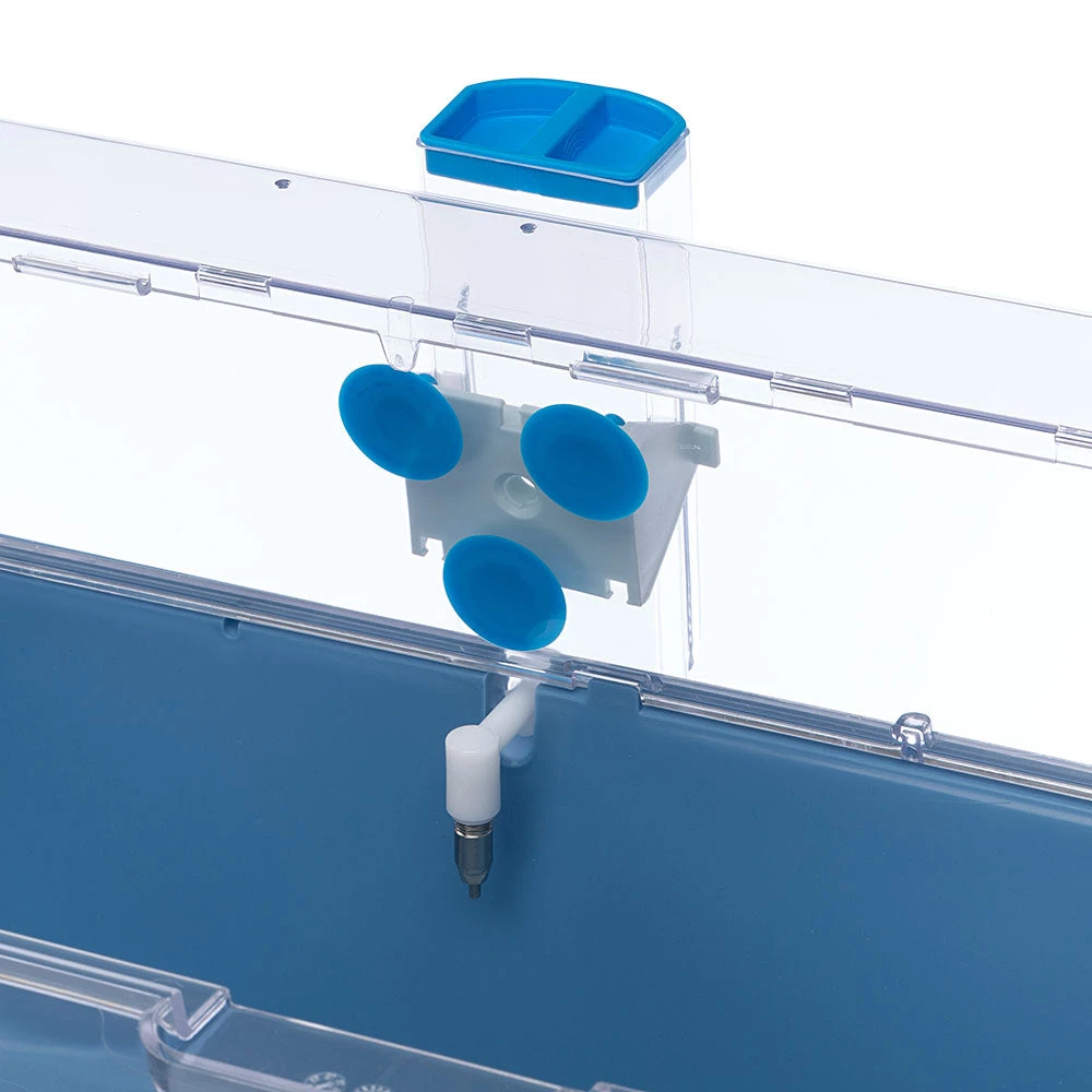 Sippy ist eine Trinkflasche für Kleintiere die sich dank der mitgelieferten Saugnäpfe sowohl an Metall- als auch an Kunststoffheimen befestigen lässt. Die Trinkfasche kann leicht aufgefüllt werden, ohne sie abzunehmen, da sie einen zu öffnenden Deckel hat. In drei verschiedenen Größen erhältlich: small für Hamster und Mäuse, medium für Meerschweinchen und Ratten und large für Kaninchen.