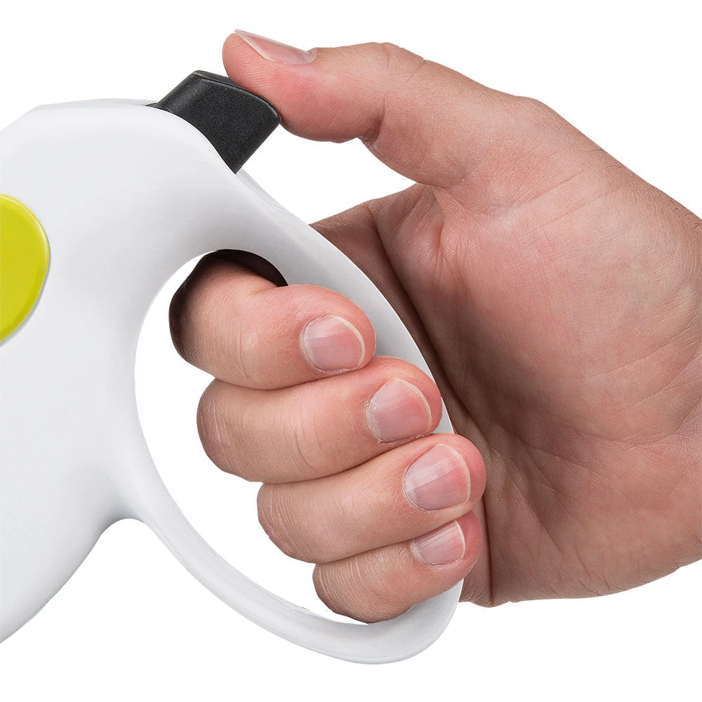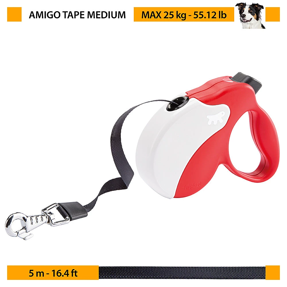 Amigo wurde in Italien designed und entwickelt. Die Leine ist einfach zu bedienen, zuverlässig und präzise. Die Bedientaste hat drei unterschiedliche Funktionen: Freilauf, Schnellstopp und Dauerstopp in der gewünschten Länge. Der Mechanismus wurde konzipiert, um langlebig zu sein, während ein spezielles Patent das Abrollen der Leinenschnur extrem flüssig und leise macht. Der ergonomische Handgriff ermöglicht Ihnen einen sicheren Griff, um Ihren Freund unter Kontrolle zu halten, und ist zugleich komfortabel für Ihre Hand.
