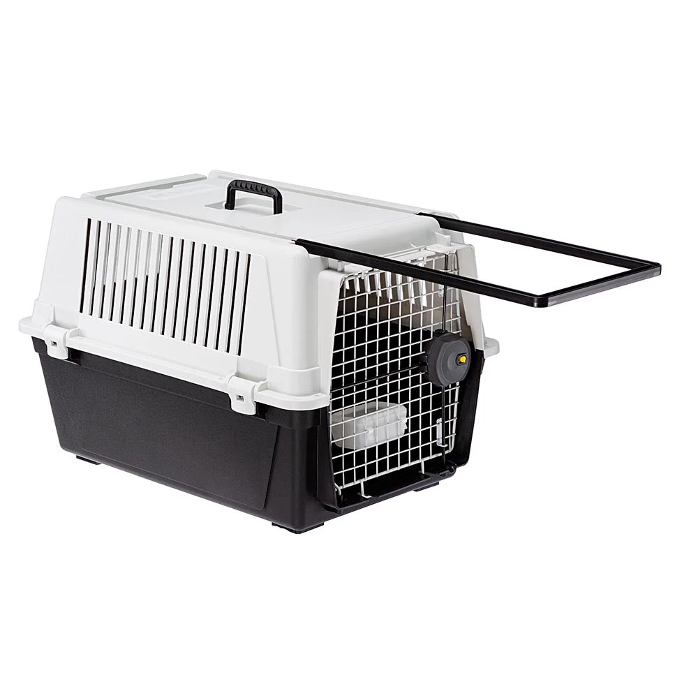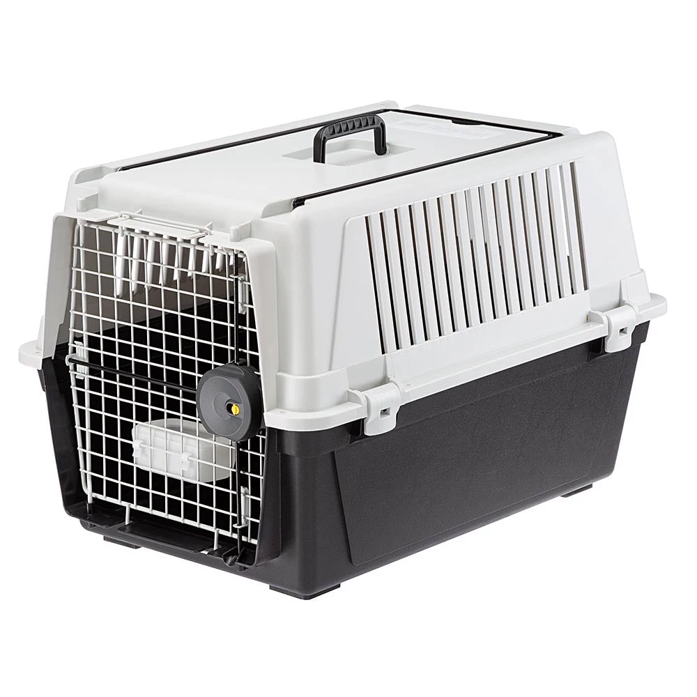 Der Atlas 40 Heimtiertransporter für Hunde hat ein Unter- und Oberteil aus massivem thermoplastischem Harz, die Tür ist aus kunststoffbeschichtetem Stahl, ausgestattet mit einem kürzlich neu gestalteten Sicherheitsschloss, das einfach zu bedienen, effektiv und sicher ist: Durch Drehen des Knopfes werden vier Befestigungspunkte aktiviert, die die Tür an der Hauptstruktur des Transporters verankern und so unangenehme versehentliche Öffnungen während der Fahrt vermeiden. Die Tür verfügt außerdem über ein 25 x 25 mm großes Gitter, das die geltenden IATA-Vorschriften für den Transport von Haustieren erfüllt.
