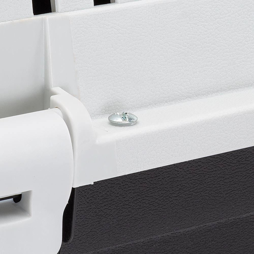 Im Lieferumfang der Atlas 40 Tiertransportbox finden Sie Kabelbinder, die an der Tür befestigt werden können, und 8 Schrauben, die in die Löcher in den seitlichen Verschlüssen eingesetzt werden können, für mehr Sicherheit.