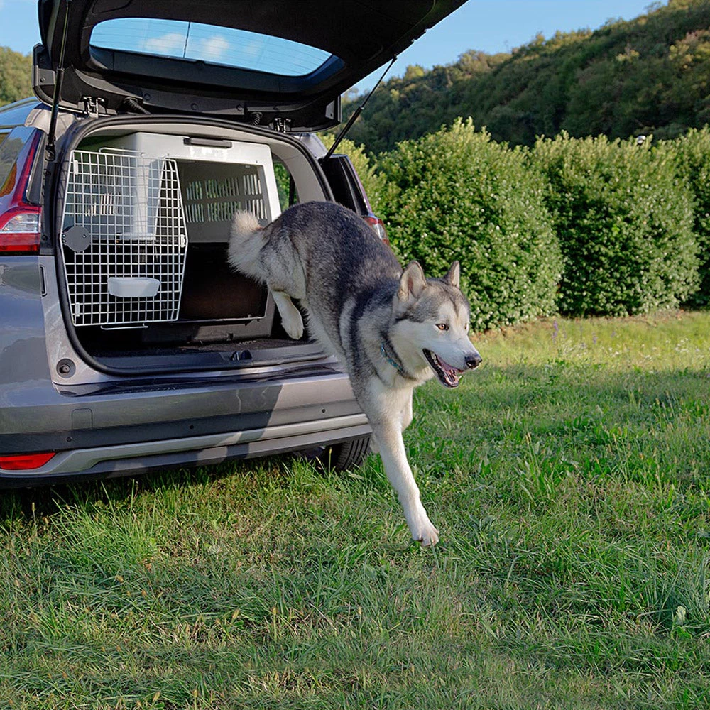 Alle Hundetransporter der Serie sind mit seitlichen Druckknöpfen mit Sicherheitsschlössern und einer soliden kunststoffbeschichteten Stahltür, einem ausziehbaren und ausfahrbaren Griff, einem Futter- oder Wasserbehälter, seitlichen Lüftungsgittern für eine gute Luftzirkulation, einem hygienischen Abtropfboden und einem Staufach ausgestattet.