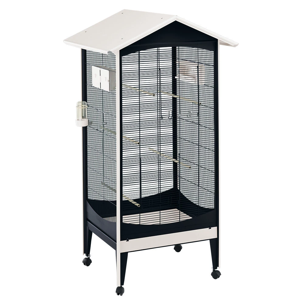 Was für ein gemütliches Zuhause für Ihre kleinen Ziervögel! Die Brio Volieren Serie ist ideal für Kanarienvögel und Exoten, wenn Sie über eine Terrasse, eine Veranda oder große Räume verfügen, in denen genügend Platz vorhanden ist. Die Brio Volieren sind aus Metall mit einem Blechdach und verfügen über stabile Rollen. Lackiert sind die Volieren zweifarbig – elfenbein und grün. Eine kleine Metallklappe am Boden der Voliere verbirgt die praktische Schmutzfangschale. Durch Anheben können Sie diese schnell entfernen und reinigen und somit die Voliere einfach von allen Abfällen und Kot befreien.