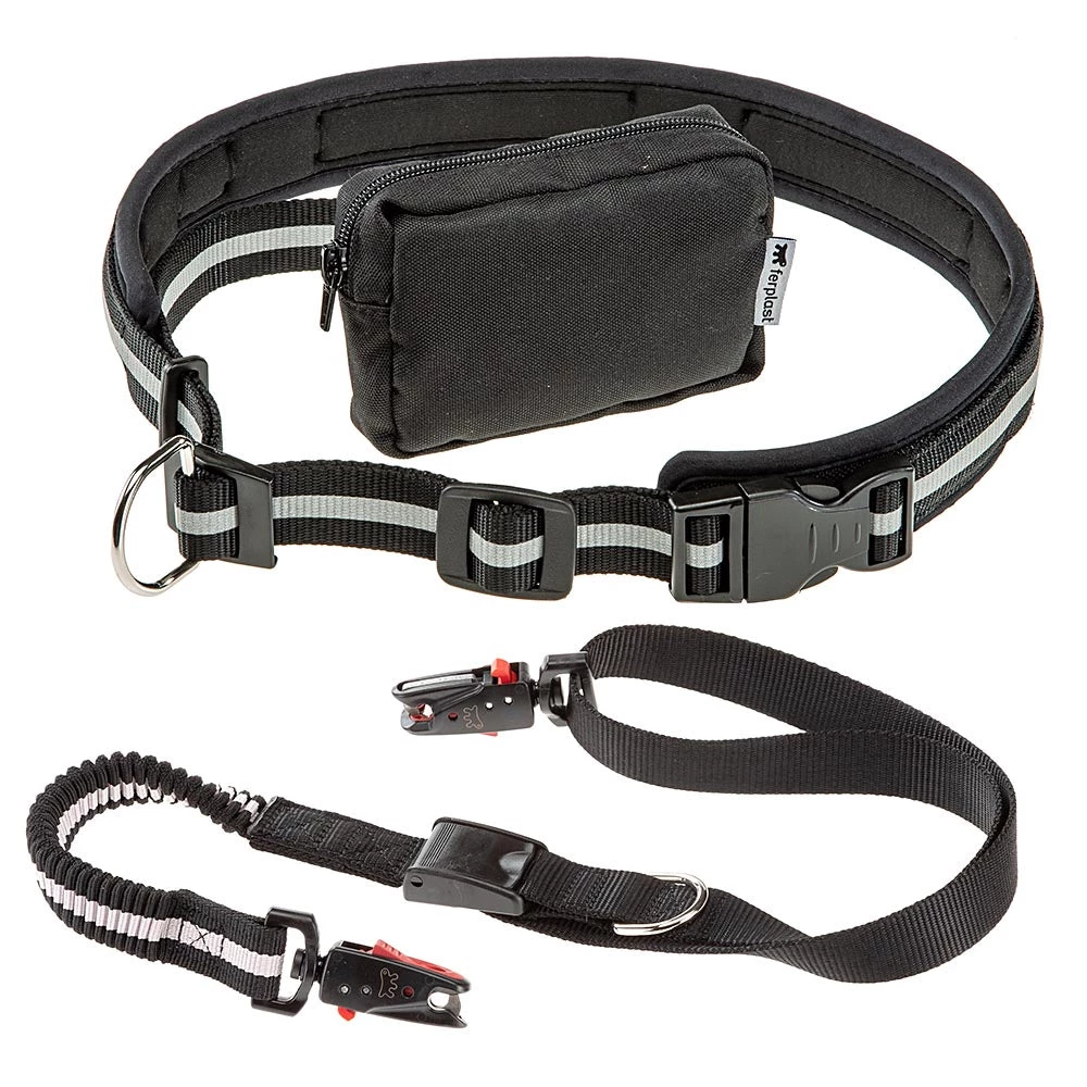 Diese Nylon-Hundeleine wird komplett mit einem verstellbaren, reflektierenden Gürtel geliefert, mit dem Sie auch in den Abendstunden in aller Ruhe spazieren gehen können. Der gepolsterte Gürtel ist verstellbar (von mindestens 75 cm bis maximal 125 cm Länge) und bietet einen hohen Tragekomfort, während die aufsteckbare Tasche kleine nützliche Gegenstände aufnehmen oder einfach nur Schlüssel, Portemonnaie oder Mobiltelefon beherbergen kann. Ergocomfort FreeTime hat eine Nylonleine, die von minimal 80 cm bis maximal 120 cm Länge verstellbar ist; sie hat einen speziellen elastischen Teil, der die Bewegungen Ihres Vierbeiners abfedert.