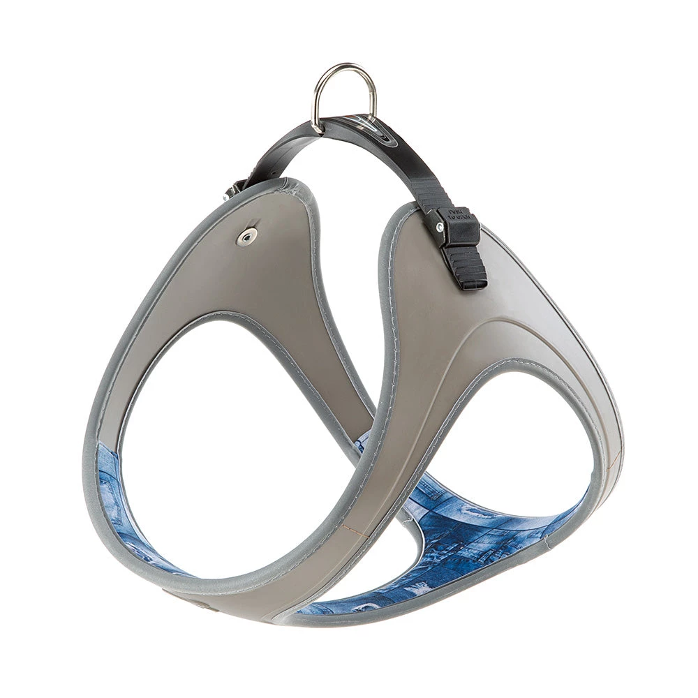 Das Geschirr Ergoflex passt sich an fast jeden Körperbau an: durch das patentierte Verschlußsystem mit Mikroregulation ist es außerdem schnell und einfach zu öffnen und zu schließen. Das besonders elastische Material gewährleistet eine hohe Resistenz gegen die kontinuierliche Zugkraft des Hundes. Darüberhinaus ist das Material ungiftig, hypoallergen, UV-resistent, widerstandsfähig gegen besonders hohe oder niedrige Temperaturen, wasserresistent und einfach mit Wasser und Seife zu reinigen.