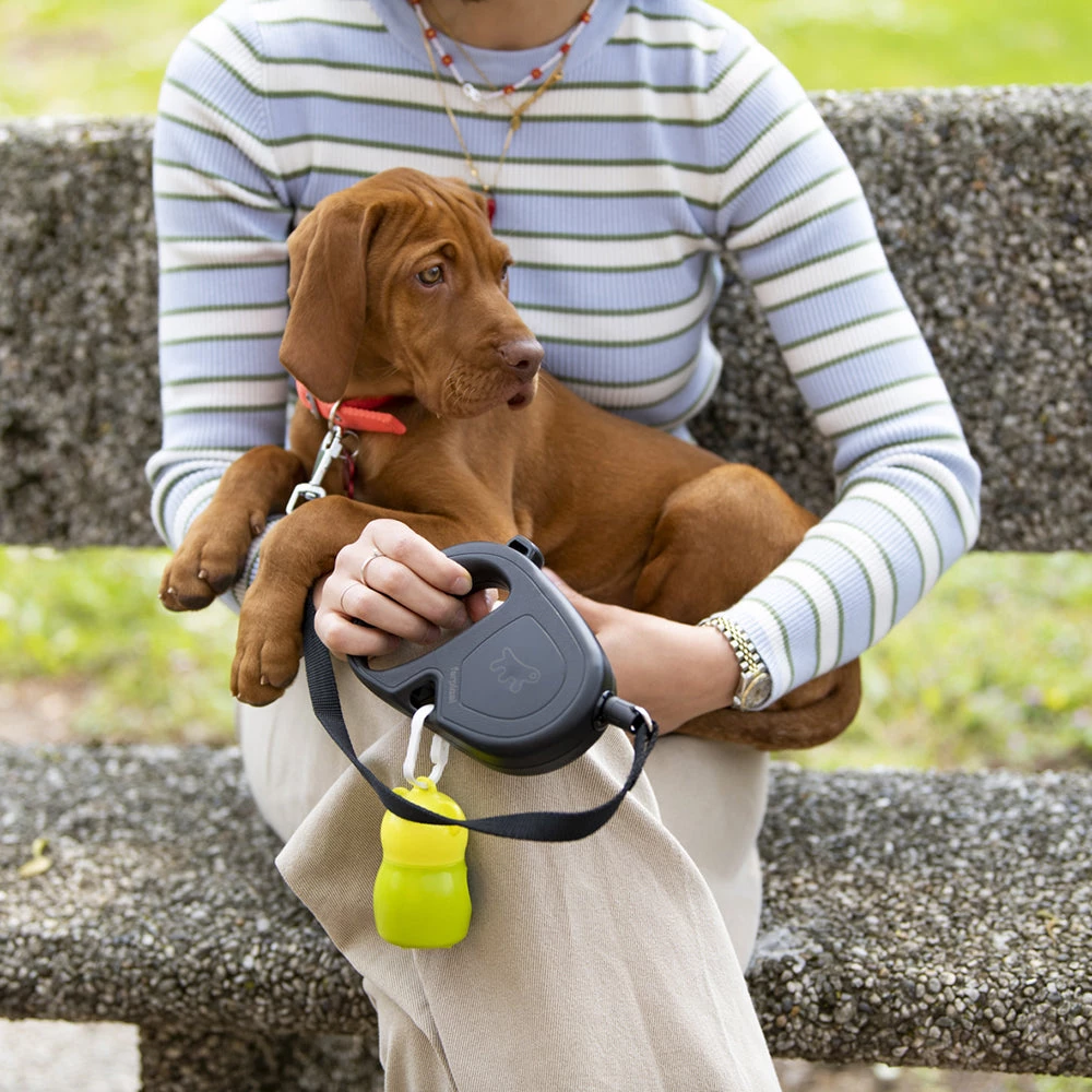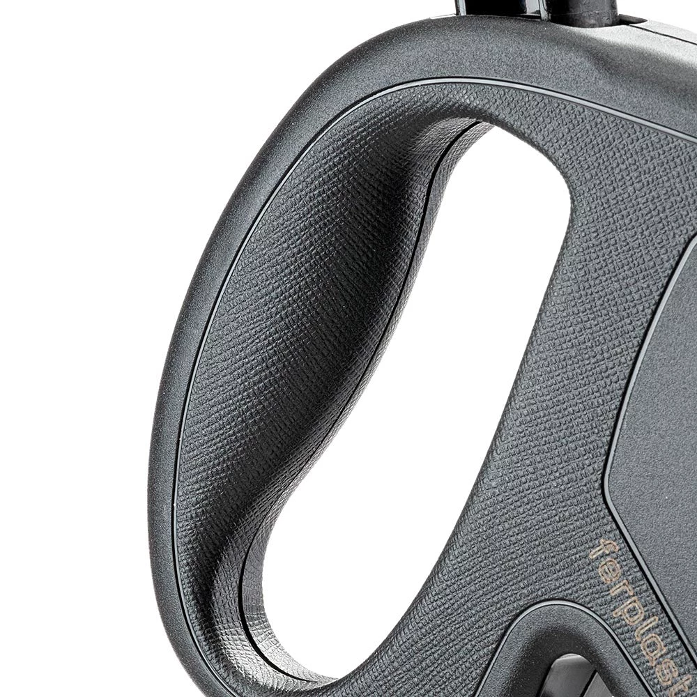 Die ausziehbare Leine Flippy One ist kompakt und leicht und verfügt über einen ergonomischen und bequemen Griff. Das praktische Loch zum Einhaken des Hygienetaschenhalters ragt nicht heraus und ist in die Schale integriert, um keine Beschwerden zu verursachen und das bequeme Tragen dieser wichtigen Zubehörteile für den Spaziergang zu ermöglichen.