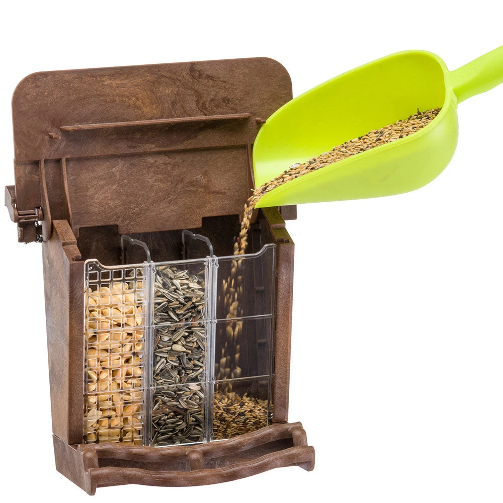 Jok sind innovative Produkte, mit denen Sie Wildvögel mit Nahrung und Futter versorgen können und die auch zu einem hervorragenden Unterschlupf werden können, wenn die mitgelieferten transparenten Elemente nicht montiert werden. Als Futtersilo verwendet, kann Jok durch die speziellen Trennwände je nach gewähltem Modell mit einer, zwei oder drei verschiedenen Samen- oder Erdnusssorten gefüllt werden: Auf diese Weise stellen Sie die notwendige Nahrung für Wildvögel sicher, insbesondere während der Fütterung kältere Monate. Darüber hinaus sind die transparenten Paneele sehr praktisch, da sie es Ihnen ermöglichen, den Füllstand der verfügbaren Lebensmittel schnell zu überprüfen.