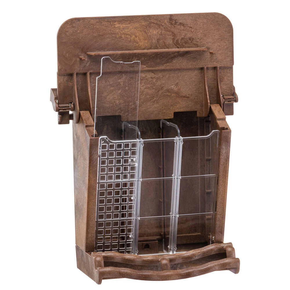 Die Outdoor-Krippe ist robust und aus wetterfesten, ungiftigen und recycelbaren Materialien gebaut. Sie ist leicht zu reinigen und resistent gegen Parasiten, um maximale Hygiene zu gewährleisten. Komplett mit Sitzstange und Schnur zur Befestigung an den Bäumen in Ihrem Garten oder an der Wand.