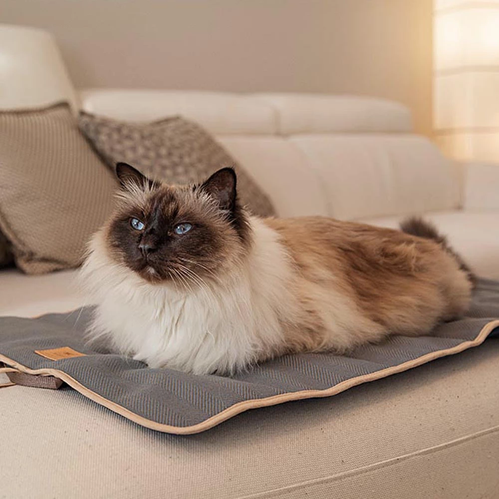 Die Logan-Decke für Hunde und Katzen ist wirklich vielseitig, da sie doppelseitig ist und in verschiedenen Farben und Materialien erhältlich ist, um Ihren Bedürfnissen besser gerecht zu werden. Sie hat eine Seite aus verschleißfestem Stoff mit Tweed-Effekt und eine andere aus weichem Samt, besonders geeignet für die Wintersaison. Dank der dünnen Polsterschicht isoliert die Logan-Matratze Ihren Freund effektiv vom Boden. Sie ist nicht sperrig, hat außerdem praktische Verschlussschnüre und kann daher aufgerollt werden, um bei verschiedenen Gelegenheiten mitgenommen zu werden, zum Beispiel um Autositze abzudecken. Pflegeleicht, die Decke ist bei niedriger Temperatur, maximal 30° C, in der Maschine waschbar. Sie ist in verschiedenen Farben und Größen erhältlich: Die kleinste Größe, Logan 70, ist am besten für kleine Tiere, sowohl Hunde als auch Katzen, geeignet.