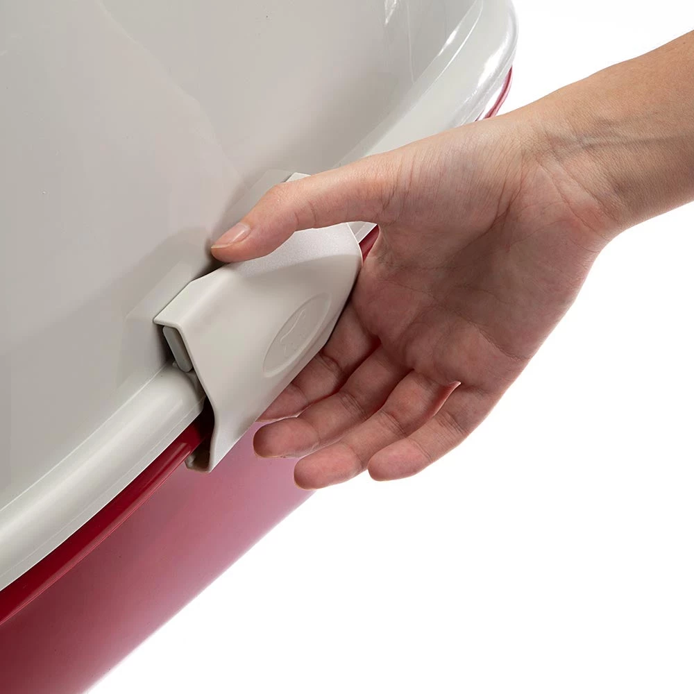 Die geschlossene Magix-Toilette aus robustem thermoplastischem Kunststoff ist mit einem Tragegriff und Aktivkohlefiltern ausgestattet, die zur Neutralisierung unangenehmer Gerüche unerlässlich und auch als Ersatzteile erhältlich sind. Die Toilette ist einfach zu reinigen, da Boden und Deckel dank des Clip-Systems getrennt werden können.