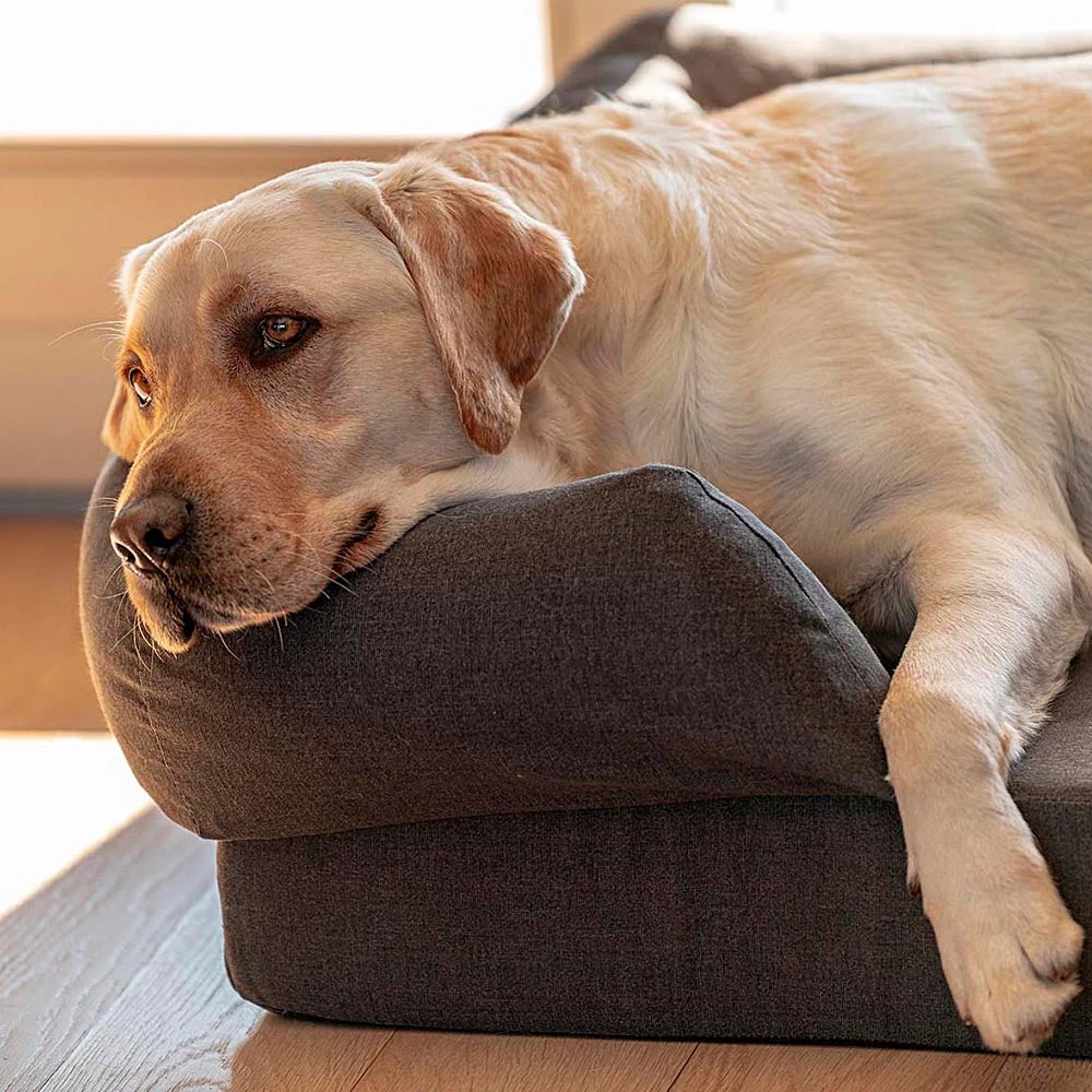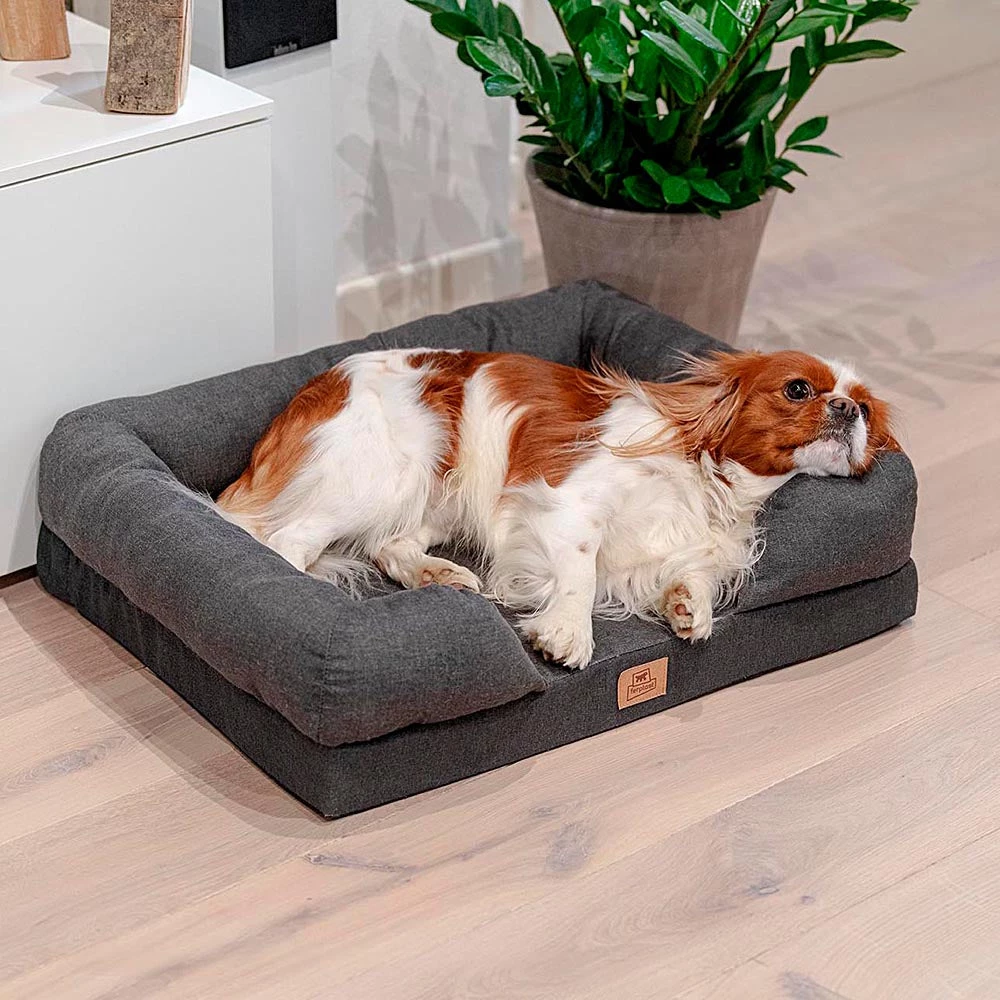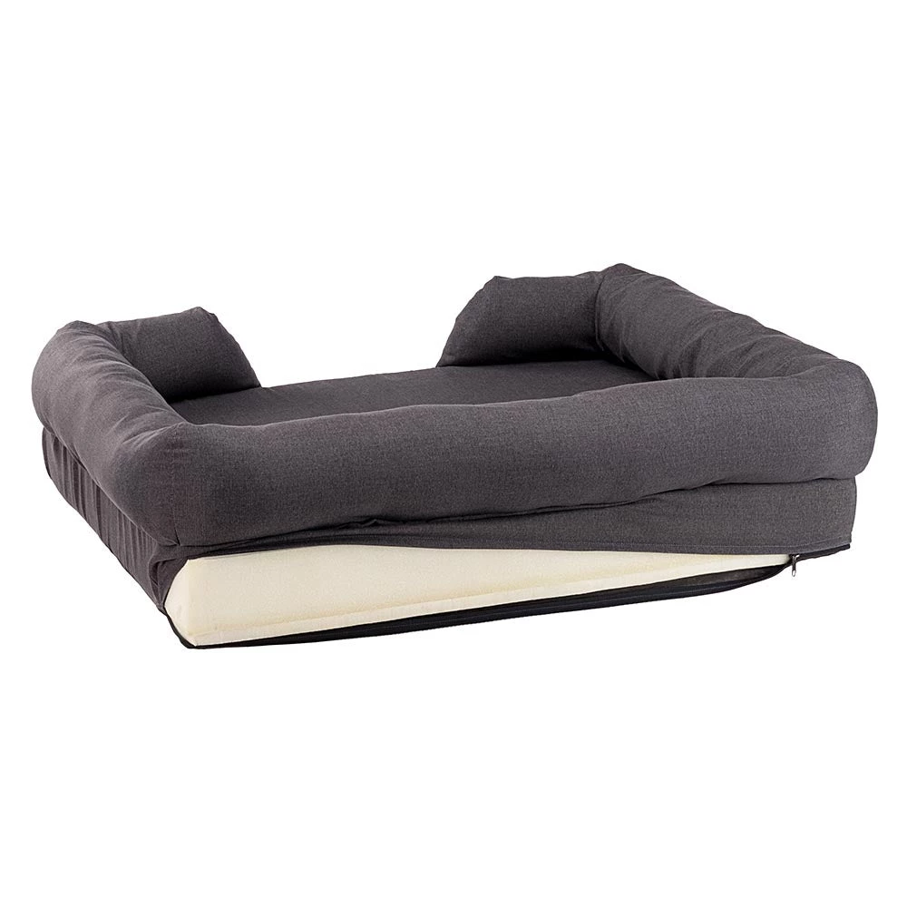 Das Memor-One Hundesofa sorgt für viel Komfort und Wohlbefinden für Ihren treuesten Freund. Tatsächlich ist es mit einer dicken internen Memory Foam-Matratze ausgestattet, die dem Tier eine hervorragende Unterstützung garantiert, da es sich an die Körperform anpasst und sein Gewicht gleichmäßig verteilt, wodurch der Druck auf die Gelenke verringert wird. Das orthopädische Bett ist daher perfekt für ältere Hunde, wird aber auch angezeigt, damit Ihre Tierfreunde bequem schlafen können. Der Zwinger ist mit dick gepolsterten Armlehnen ausgestattet, die den Kopf und Hals des Tieres stützen, sowie einer abgesenkten Vorderseite, die den Zugang zu Ihrem Hund erleichtert. Es ist in verschiedenen Modellen für kleine, mittlere oder mittelgroße Hunde erhältlich.