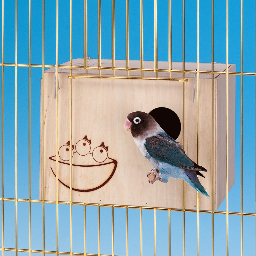 Hergestellt aus FSC™ -zertifiziertem Holz, das aus Wäldern stammt, die gemäß strengen Umwelt-, Sozial- und Wirtschaftsstandards korrekt und verantwortungsbewusst bewirtschaftet werden und anderen kontrollierten Quellen. Vogelnester sind unverzichtbar, damit Vögel in völliger Ruhe nisten können. Ausgestattet mit speziellen Metallhaken können sie an allen Ferplast-Vogelheimen an den Türen angebracht werden. Sie haben eine schöne thematische Dekoration auf der Vorderseite und einen praktischen Deckel, der zum Reinigen geöffnet werden kann. Sie sind in verschiedenen Größen erhältlich und mit einer Sitzstange und einem runden Zugangsloch ausgestattet. Je nach Modell hat das Eingangsloch einen Durchmesser von 5 bis 8 cm. Die großen und extragroßen Nester eignen sich beispielsweise besonders für Nymphen- und Wellensittiche.