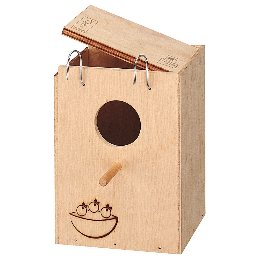 Damit Ihre Vögel in Ruhe nisten können, ist ein Nistkasten unverzichtbar. Die Nido Nistkästen können mit einem Metallhaken an allen Käfigen von Ferplast befestigt werden. Sie haben einen Deckel, der für eine einfache Reinigung geöffnet werden kann. Es gibt den NIDO Nistkasten in fünf verschiedenen Größen. Je nach Modell liegt der Durchmesser des Eingangslochs zwischen 4 und 8 cm. Für Kanarienvogel und exotische Vögel beispielsweise eignen sich der NIDO Mini, SMALL und MEDIUM am Besten.
