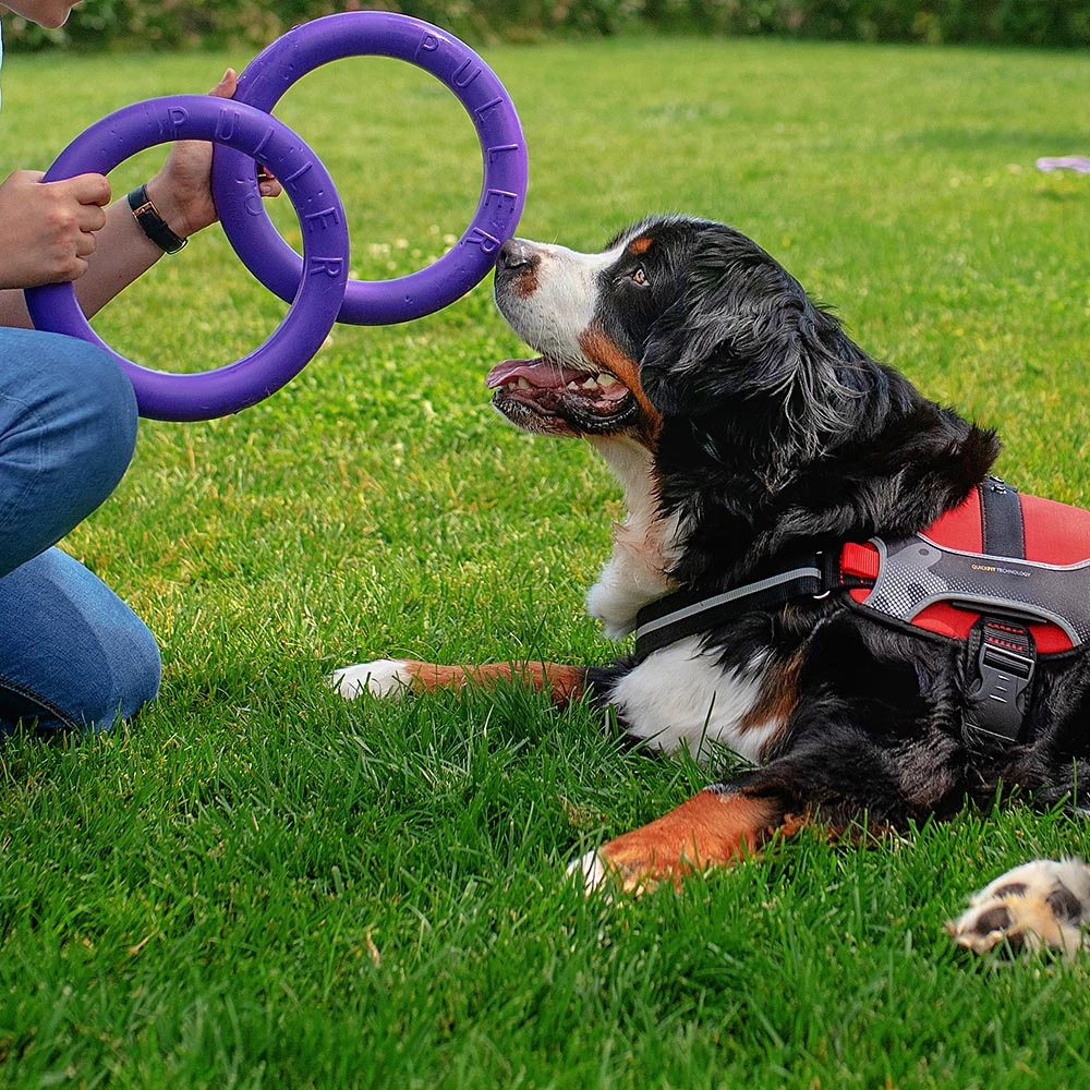 Puller ist in verschiedenen Modellen erhältlich, je nach Größe des Hundes. Jedes Paket enthält 2 Trainingsringe.