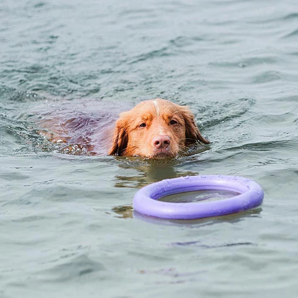 Das Puller-Spielzeug besteht aus einer ungiftigen Polymerverbindung, einem Material, das widerstandsfähig und gleichzeitig sehr leicht ist und daher auch von kleinen Hunden oder Welpen verwendet werden kann. Er schwimmt auf dem Wasser und ist sicher für das Tier, geruchlos und unbedenklich für die Zähne Ihres treuen Freundes.