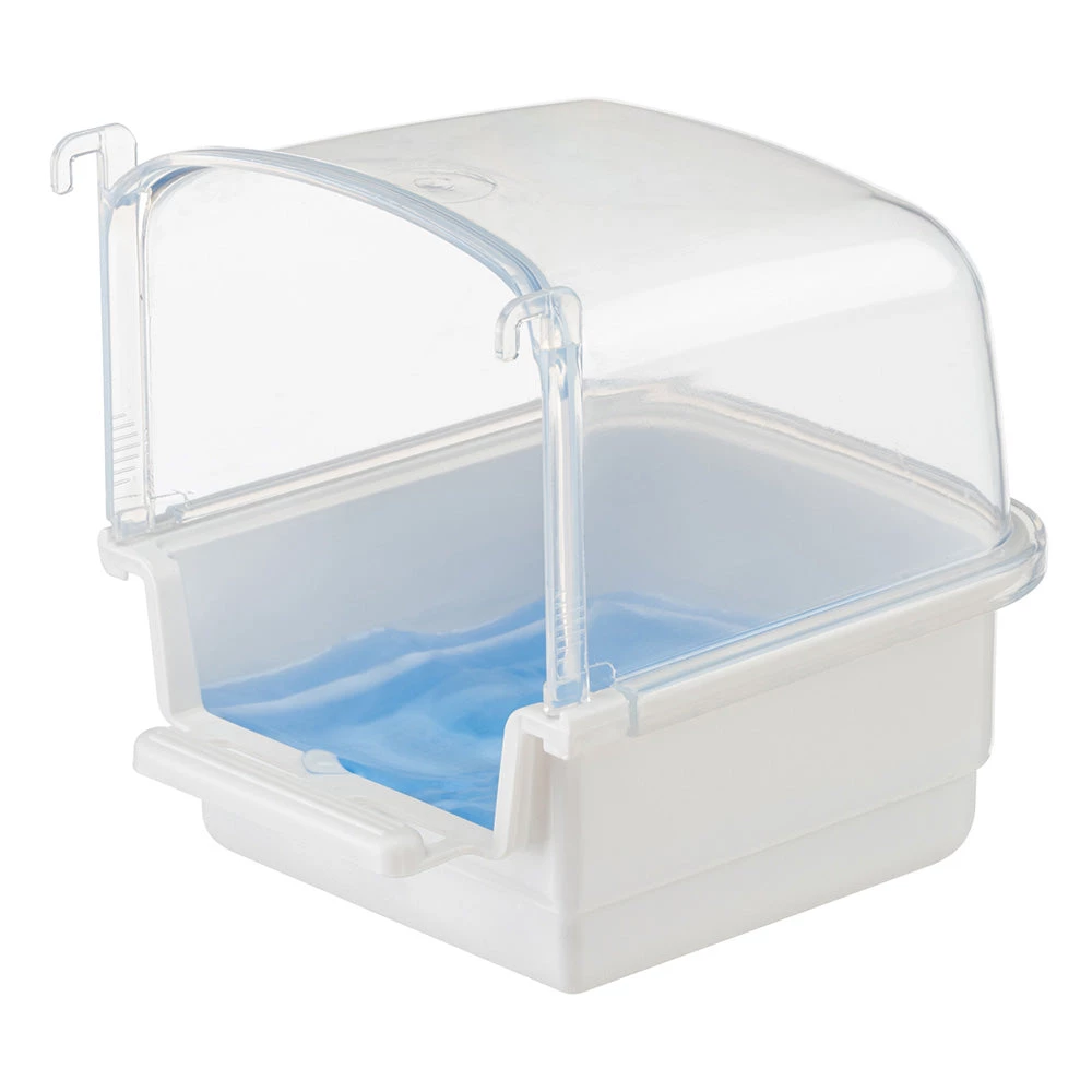 Rio 1 is a bath for canaries, small birds and exotic birds that allows your friends to bathe their feathers in complete tranquility. Made with non-toxic plastics, safe for the animal, it has a non-slip bottom and a practical perch for birds. It is also equipped with a transparent protection useful to prevent splashes from escaping. The bath adapts to various bird cages, can be easily assembled inside the habitat.