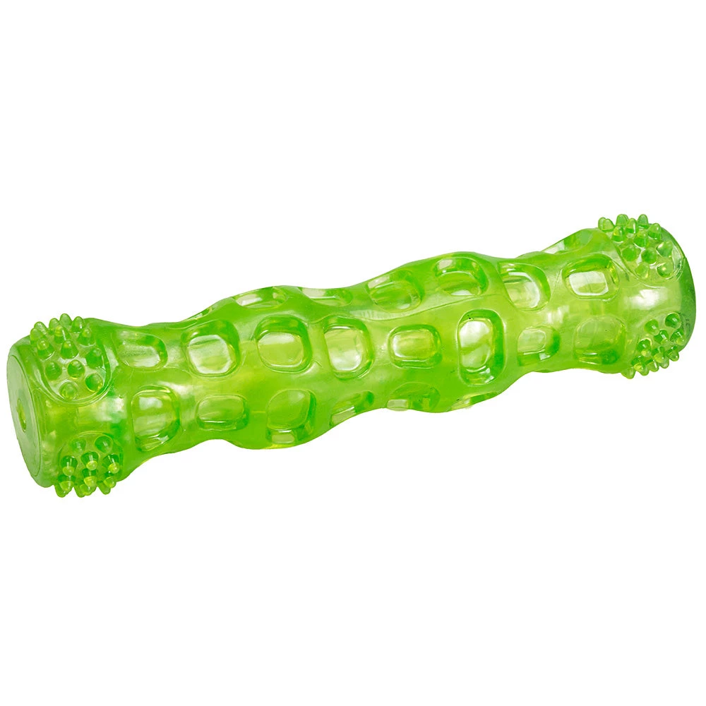 Dieses Dentalspielzeug für Hunde ist ein effektives Werkzeug, dass zugleich Spass bereitet und zur Zahngesundheit Ihres Lieblinges beiträgt. Aus thermoplastischem Gummi hergestellt, einem besonders widerstandfähigem Material, regt es Ihren Vierbeiner zum Kauen an und die unregelmäßige Oberfläche bewirkt einen Massageeffekt, und reinigt gleichzeitig das Zahnfleisch. Die längliche Form vereinfacht ein Festhalten während des Kauens, ermöglicht aber auch, es als Apportierspielzeug zu gebrauchen.