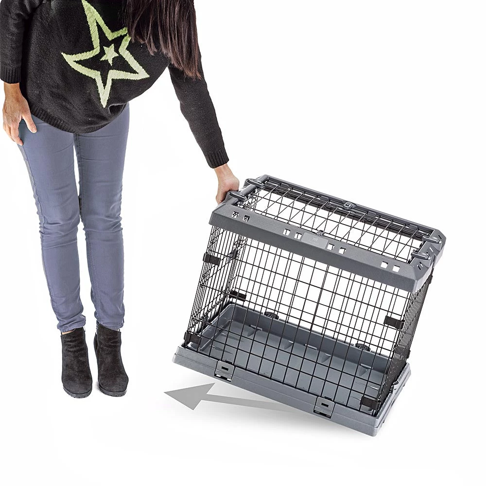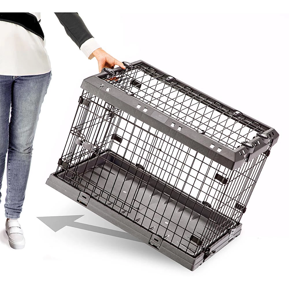 Superior ist auch einfacher zu montieren und erfordert keine Verwendung von Werkzeugen. Sein patentiertes Faltsystem ermöglicht einen einfachen Transport. Für kurze Fahrten, 2-3 Meter, finden Sie auf der Unterseite 4 bequeme Rollen. Für längere Reisen und mit dem Hund im Inneren können Sie sich jedoch entscheiden, das L440 4-Rad-Kit separat zu erwerben, bestehend aus 2 schwenkbaren und 2 festen Rädern. Um Ihren Hund weiter zu schützen und Privatsphäre und Ruhe während des Transports zu gewährleisten, können Sie auch die passende Hülle aus wasserdichtem und kratzfestem Stoff erwerben. Das Cover ist mit Gummibändern ausgestattet, die eine einfache Anpassung an den Käfig ermöglichen und verfügt über aufrollbare Fenster sowohl auf der Türseite als auch auf der Dachseite der Box.