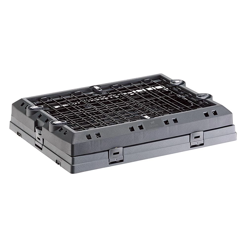 Der Kunststoffboden enthält Schmutz und sorgt dank des speziellen Drainagesystems und der rutschfesten Oberfläche für eine trockene und stabile Umgebung für Ihren Freund. Darüber hinaus ist der Boden mit rutschfesten Gummipads ausgestattet, die die Box während des Gebrauchs gut am Boden halten.