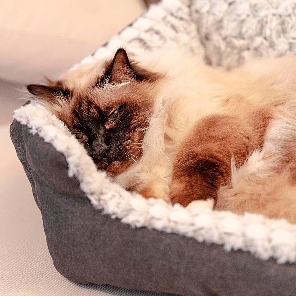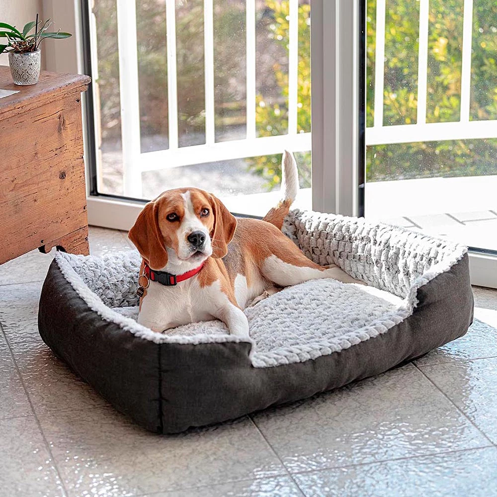 Sweetie ist ein kuscheliges und weiches Kissen für Katzen und Hunde aus Baumwollstoff mit warmem Öko-Fellfutter. Sehr bequem, sorgt es zu jeder Tageszeit für ein ruhiges und entspannendes Nickerchen für Ihren geliebten Hund. Der Sweety-Zwinger ist dank des warmen Plüschs perfekt für die Wintersaison geeignet, kann aber zu jeder Jahreszeit für die kältesten Tiere verwendet werden. Das Kinderbett verfügt über eine dicke Innenpolsterung und eine kuschelige Form mit erhöhten Kanten, die den Kopf und den Hals des Haustieres stützen. Die abgesenkte Vorderseite ermöglicht dem Tier einen einfachen Ein- und Ausstieg.