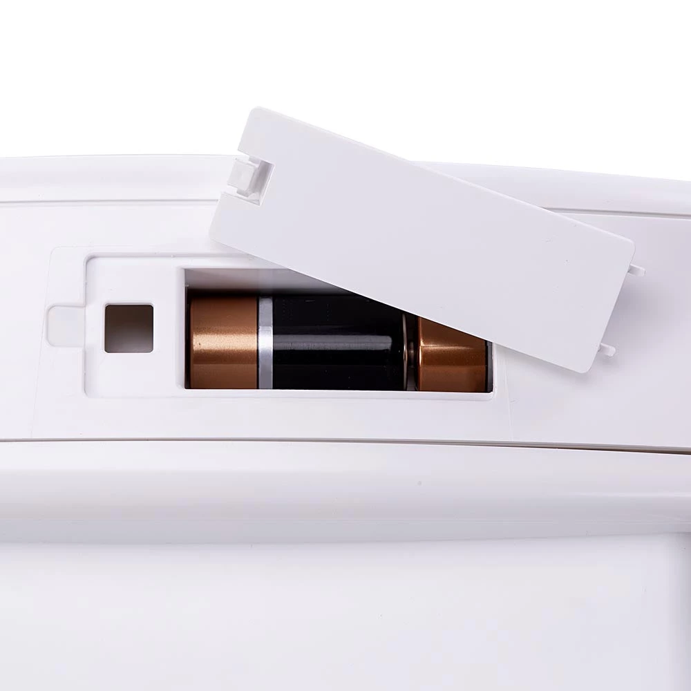 Das Produkt benötigt 4 Batterien 1,5V LR.14, die nicht im Lieferumfang enthalten sind, und verfügt über eine nützliche Anzeige, sobald die Batterien gewechselt werden sollten. Sollten die Batterien einmal ganz leer sein, machen Sie sich keine Sorgen, die Mikrochips werden im Speicher gehalten und es ist daher nicht notwendig, die Programmierung zu wiederholen.