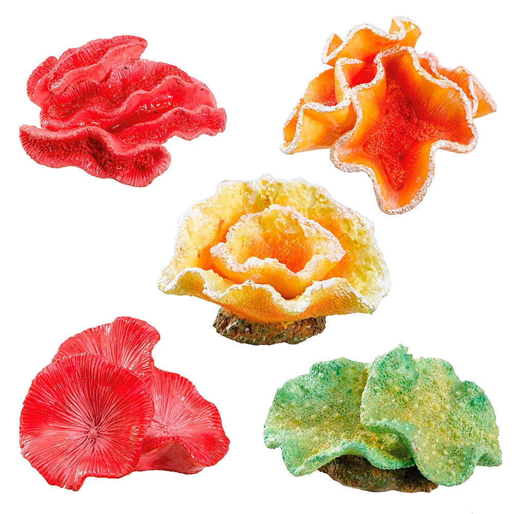 Perfekt, um Ihrem Aquarium einen Hauch von Farbe zu verleihen! BLU 9179 enthält farbenfrohe und originelle Kunstharzaccessoires, um Ihr Aquarium zu dekorieren. Darunter finden Sie Seesterne und Korallen, von denen einige auf Felsen angebracht sind, andere ohne Steinuntergrund. Das Paket enthält je ein Stück.Die verschiedenen Farben und Formen werden nach Lagerverfügbarkeit versendet: Es ist daher nicht möglich, das Modell oder die Farbe zu wählen.